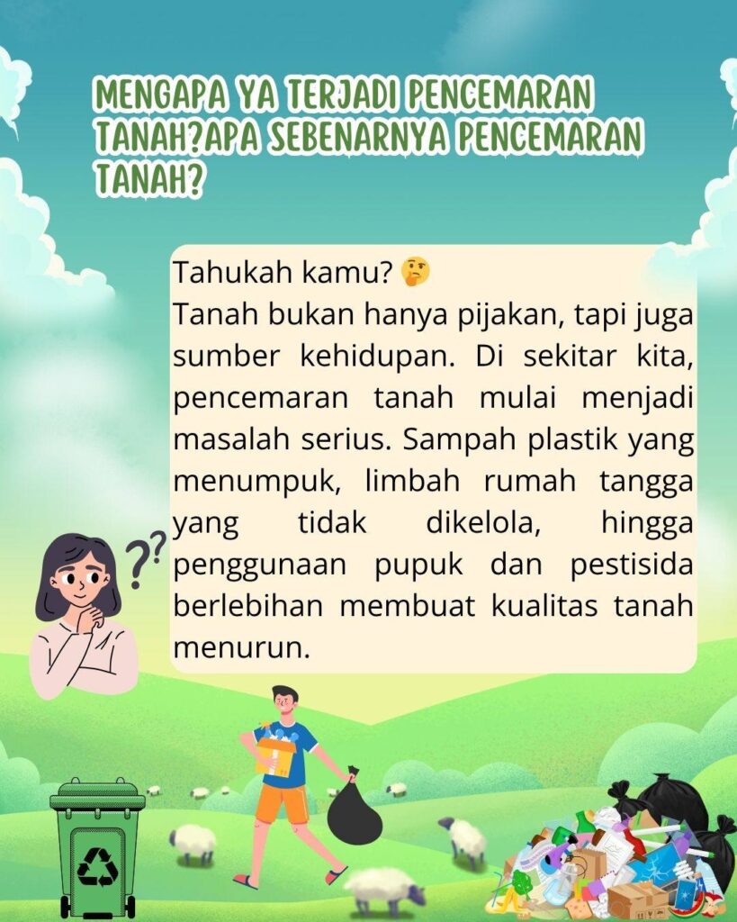 Tanah ternyata bisa sakit juga yaa, Yuk pelajari bagaimana pencemaran tanah bisa terjadi dan cata mengatasinya :