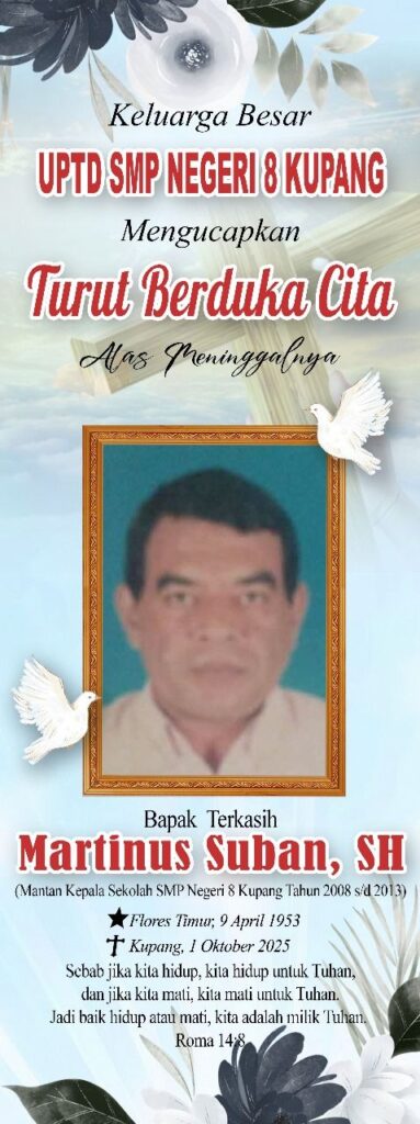 Telah berpulang ke rumah Bapa di surga, Bapak Martinus Suban, SH, mantan Kepala Sekolah SMP Negeri 8 Kupang (periode 2008–2013).